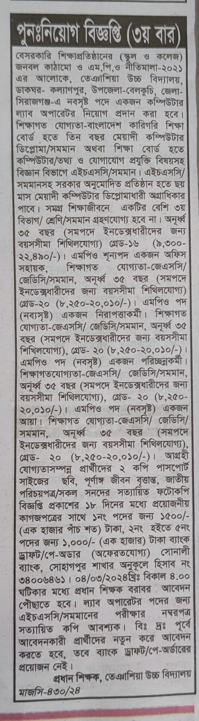 নিয়োগ বিজ্ঞপ্তি। মানব জমিন ও যুগের কথা। |